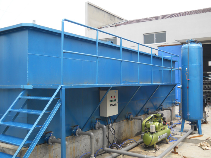 加入混凝劑的溶器罐高壓輸出的溶氣水同時在氣浮池內反應凝聚,從原始膠體凝聚成絮狀體的過程是該機的工作過程,整個反應的原理為藥劑擴散,混凝水解,雜質膠體脫穩膠體聚集,微絮粒碰聚,使膠體顆粒徑從0.001微米凝聚成2毫米絮凝體迅速上浮動,浮渣經過集水槽排入污泥池.